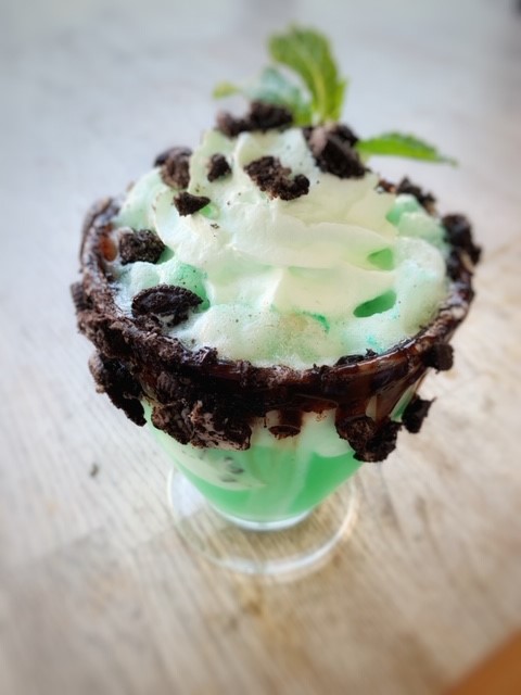- Top off float with green tinted whipped cream from a Whip-It! dispenser.